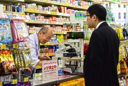 日本东京涩谷区的一家药妆店内,一位老年工作者正在为顾客服务。图据视觉中国