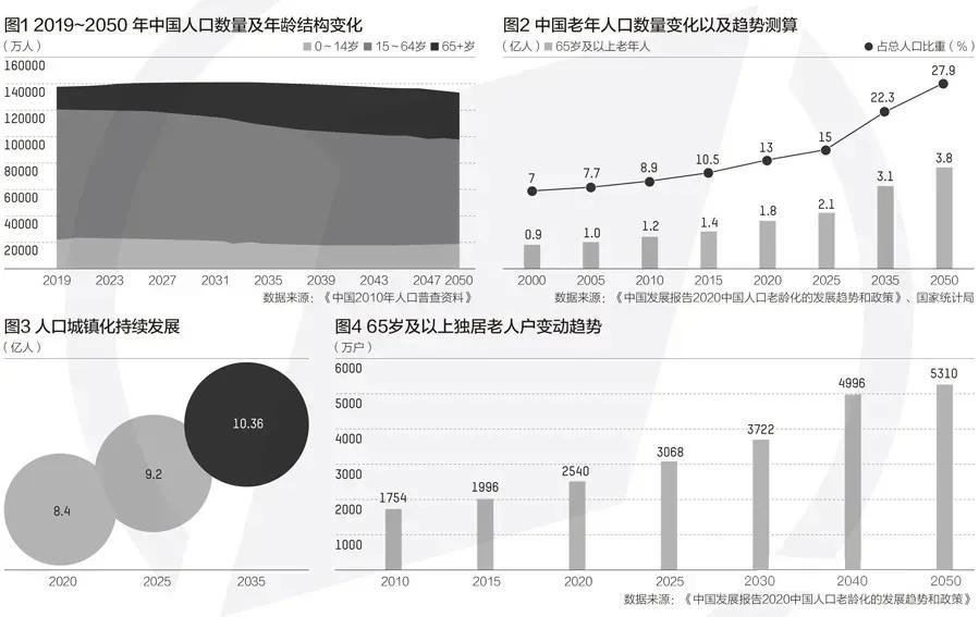 据预测,中国将在2022年左右正式进入老龄社会,届时65岁及以上人口将占总人口的14%以上。报告称,若以60岁及以上作为划定老年人口的标准,到2050年中国将有近5亿老年人。